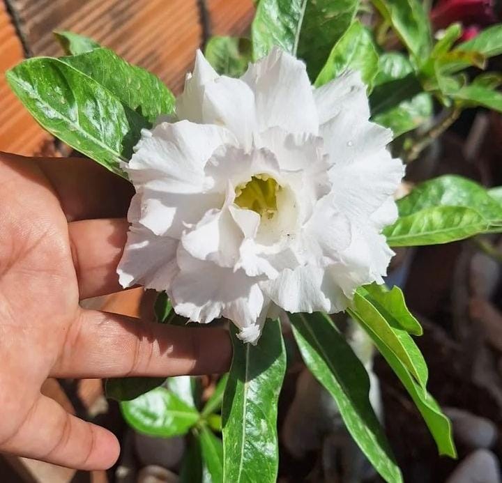 Apresentamos a elegante Rosa do Deserto Branca Dobrada (Adenium obesum), uma planta exótica e deslumbrante que adiciona um toque de sofisticação ao seu jardim ou ambiente interno. Com pétalas duplas e brancas, suas flores destacam-se pela beleza e pela durabilidade. A Rosa do Deserto é conhecida por sua resistência e facilidade de cultivo, necessitando de pouca água e muito sol. Ideal para vasos e jardins, ela se adapta bem a climas quentes e secos. Adquira agora e transforme seu espaço com essa magnífica planta ornamental!